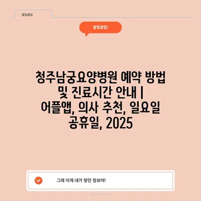청주남궁요양병원 예약 방법 및 진료시간 공지 | 어플앱, 의사 추천, 일요일 공휴일, 2025 에 대해 자주 묻는 질문 TOP 5