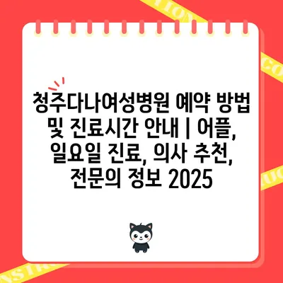 ✅ 청주다나여성병원 예약 방법을 한눈에 알아보세요.