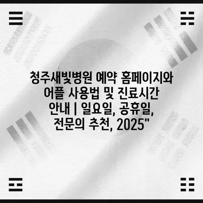 청주새빛병원 예약 홈페이지와 어플 사용법 및 진료시간 안내 | 일요일, 공휴일, 전문의 추천, 2025″