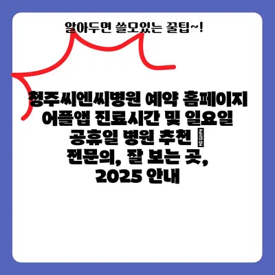 청주씨엔씨병원 예약 홈페이지 어플앱 진료시간 및 일요일 공휴일 병원 추천 | 전문의, 잘 보는 곳, 2025 안내