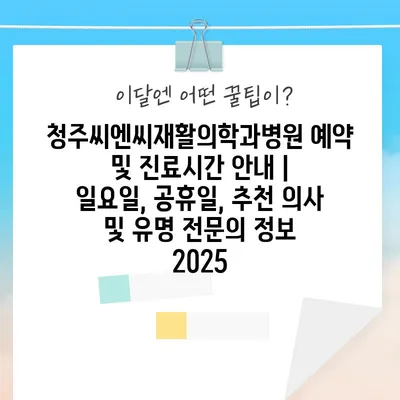 청주씨엔씨재활의학과병원 예약 및 진료시간 공지 | 일요일, 공휴일, 추천 의사 및 유명 전연락 정보 2025에 대해 소개합니다.