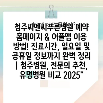 청주씨엔씨푸른병원 예약 홈페이지 & 어플앱 이용 방법! 진료시간, 일요일 및 공휴일 정보까지 완벽 정리 | 청주병원, 전문의 추천, 유명병원 비교 2025″