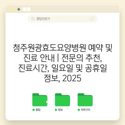청주원광효도요양병원 예약 및 진료 공지 | 전연락 추천, 진료시간, 일요일 및 공휴일 정보, 2025