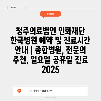 청주의료법인 인화재단 한국병원 예약 및 진료시간 공지 | 종합병원, 전연락 추천, 일요일 공휴일 진료 2025