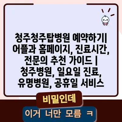청주청주탑병원 예약하기| 어플과 홈페이지, 진료시간, 전문의 추천 가이드 | 청주병원, 일요일 진료, 유명병원, 공휴일 서비스