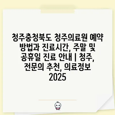 ✅ 청주충청북도 청주의료원의 진료시간과 예약 방법을 자세히 알아보세요.
