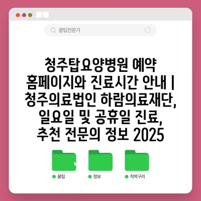 청주탑요양병원 예약 홈페이지와 진료시간 공지 | 청주의료법인 하람의료재단, 일요일 및 공휴일 진료, 추천 전연락 정보 2025 에 대해 자주 묻는 질문 TOP 5