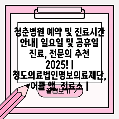 ✅ 청춘병원의 예약 방법과 진료 시간을 지금 확인해 보세요!