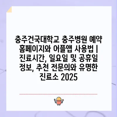 충주건국대학교 충주병원 예약 홈페이지와 어플앱 사용법 | 진료시간, 일요일 및 공휴일 정보, 추천 전연락와 유명한 진료소 2025에 대한 내용을 소개합니다.