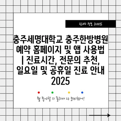 충주세명대학교 충주한방병원 예약 홈페이지 및 앱 사용법 | 진료시간, 전문의 추천, 일요일 및 공휴일 진료 안내 2025
