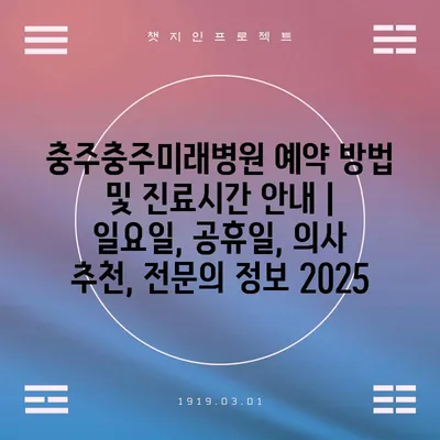 ✅ 충주미래병원 예약 방법과 진료시간을 자세히 알아보세요.