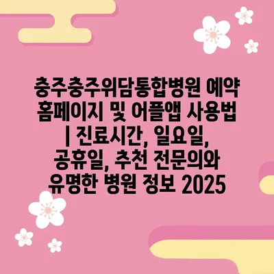 충주충주위담통합병원 예약 홈페이지 및 어플앱 사용법 | 진료시간, 일요일, 공휴일, 추천 전문의와 유명한 병원 정보 2025