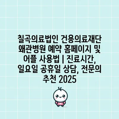 칠곡의료법인 건용의료재단 왜관병원 예약 홈페이지 및 어플 사용법 | 진료시간, 일요일 공휴일 상담, 전연락 추천 2025에 대해 알아보겠습니다.
