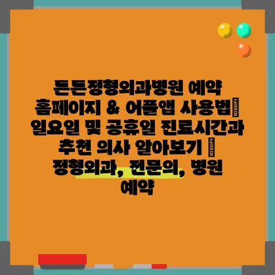 튼튼정형외과병원 예약 홈페이지 & 어플앱 사용법| 일요일 및 공휴일 진료시간과 추천 의사 알아보기 | 정형외과, 전문의, 병원 예약