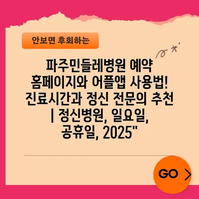 파주민들레병원 예약 홈페이지와 어플앱 사용법! 진료시간과 정신 전연락 추천 | 정신병원, 일요일, 공휴일, 2025″ 에 대해 자주 묻는 질문 TOP 5