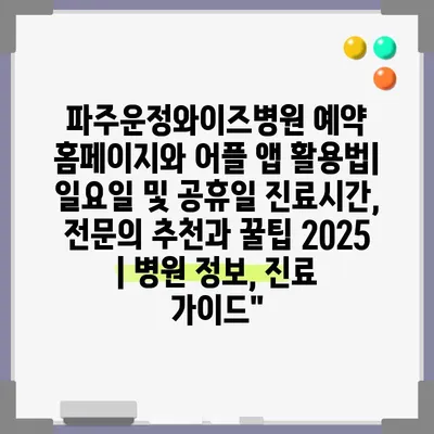 파주운정와이즈병원 예약 홈페이지와 어플 앱 활용법| 일요일 및 공휴일 진료시간, 전문의 추천과 꿀팁 2025 | 병원 정보, 진료 가이드”