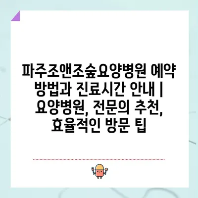 파주조앤조숲요양병원 예약 방법과 진료시간 공지 | 요양병원, 전연락 추천, 효율적인 방문 팁 에 대해 자주 묻는 질문 TOP 5