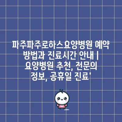 ✅ 파주파주로하스 요양병원의 예약 방법을 자세히 알아보세요.