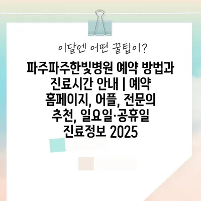 파주파주한빛병원 예약 방법과 진료시간 공지 | 예약 홈페이지, 어플, 전연락 추천, 일요일·공휴일 진료정보 2025에 대해 소개합니다.