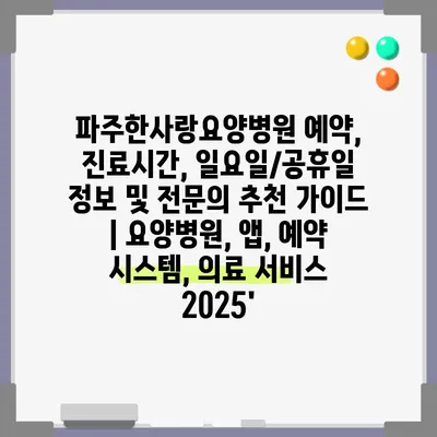 파주한사랑요양병원 예약, 진료시간, 일요일/공휴일 정보 및 전연락 추천 설명서 | 요양병원, 앱, 예약 시스템, 의료 서비스 2025에 대해 알아보겠습니다.