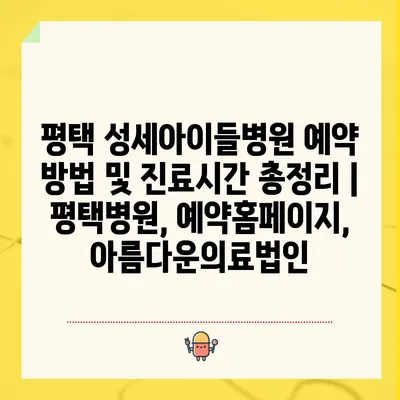 평택 성세아이들병원 예약 방법 및 진료시간 총정리 | 평택병원, 예약홈페이지, 아름다운의료법인에 대해 자주 묻는 질문 TOP 5