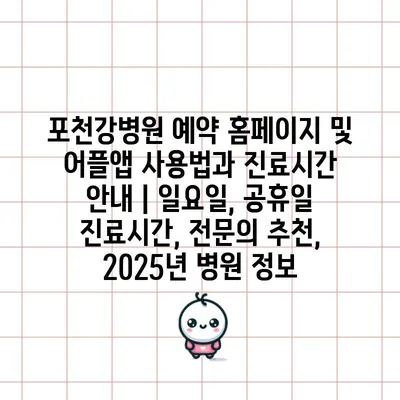 포천강병원 예약 홈페이지 및 어플앱 사용법과 진료시간 안내 | 일요일, 공휴일 진료시간, 전문의 추천, 2025년 병원 정보
