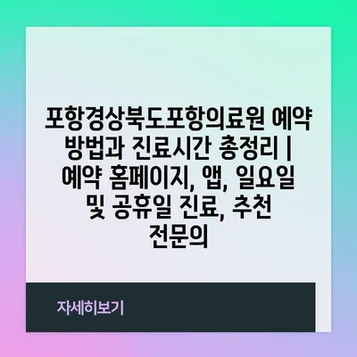 포항경상북도포항의료원 예약 방법과 진료시간 총정리 | 예약 홈페이지, 앱, 일요일 및 공휴일 진료, 추천 전문의