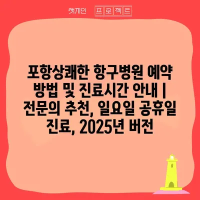 포항상쾌한 항구병원 예약 방법 및 진료시간 공지 | 전연락 추천, 일요일 공휴일 진료, 2025년 버전