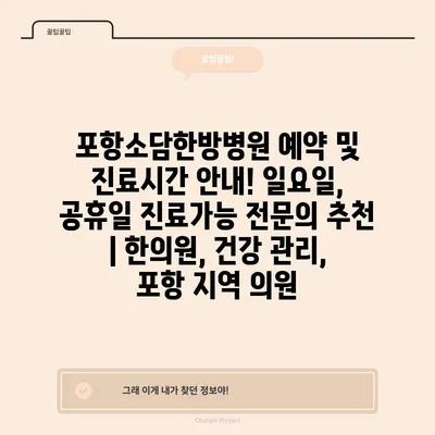 ✅ 포항소담한방병원 진료시간과 예약 방법을 상세히 알아보세요.