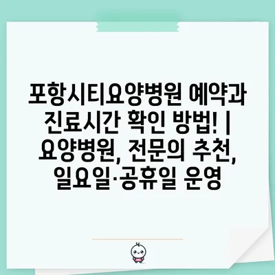 포항시티요양병원 예약과 진료시간 확인 방법! | 요양병원, 전연락 추천, 일요일·공휴일 운영 에 대해 자주 묻는 질문 TOP 5