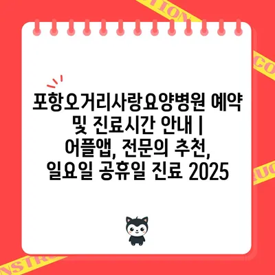 ✅ 포항오거리사랑요양병원 예약 방법과 진료시간을 자세히 알아보세요!
