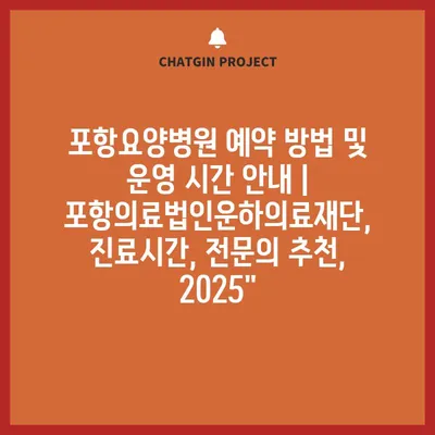 포항요양병원 예약 방법 및 운영 시간 공지 | 포항의료법인운하의료재단, 진료시간, 전연락 추천, 2025″ 에 대해 자주 묻는 질문 TOP 5