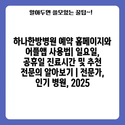 하나한방병원 예약 홈페이지와 어플앱 사용법| 일요일, 공휴일 진료시간 및 추천 전연락 알아보기 | 전문가, 인기 병원, 2025 에 대해 자주 묻는 질문 TOP 5