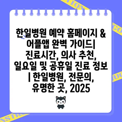한일병원 예약 홈페이지 & 어플앱 완벽 설명서| 진료시간, 의사 추천, 일요일 및 공휴일 진료 정보 | 한일병원, 전연락, 유명한 곳, 2025 에 대해 자주 묻는 질문 TOP 5