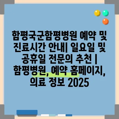 함평국군함평병원 예약 및 진료시간 안내| 일요일 및 공휴일 전문의 추천 | 함평병원, 예약 홈페이지, 의료 정보 2025