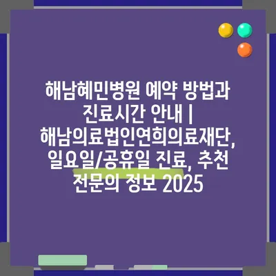 해남혜민병원 예약 방법과 진료시간 공지 | 해남의료법인연희의료재단, 일요일/공휴일 진료, 추천 전연락 정보 2025