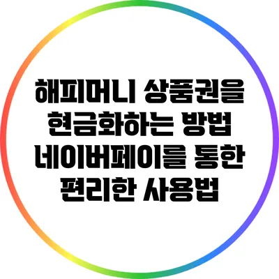 해피머니 제품권을 현금화하는 방법은 여러 가지가 있어요. 그 중에서도 네이버페이를 통한 방법이 가장 간편하고 안전한 방법으로 추천할 수 있어요.
