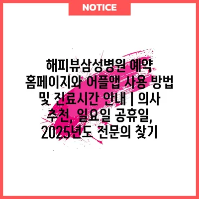 해피뷰삼성병원 예약 홈페이지와 어플앱 사용 방법 및 진료시간 안내 | 의사 추천, 일요일 공휴일, 2025년도 전문의 찾기