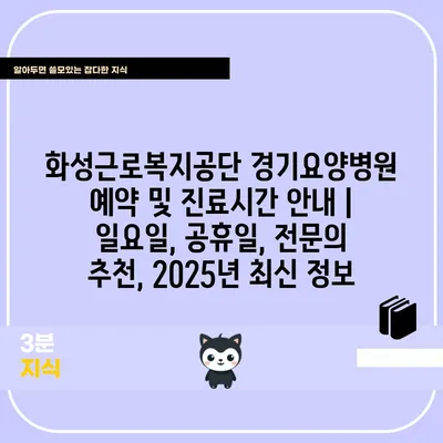 화성근로복지공단 경기요양병원 예약 및 진료시간 공지 | 일요일, 공휴일, 전연락 추천, 2025년 최신 정보 에 대해 자주 묻는 질문 TOP 5