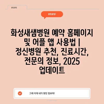 화성새샘병원 예약 홈페이지 및 어플 앱 사용법 | 정신병원 추천, 진료시간, 전연락 정보, 2025 업데이트에 대해 자주 묻는 질문 TOP 5