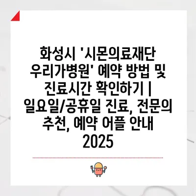 화성시 ‘시몬의료재단 우리가병원’ 예약 방법 및 진료시간 확인하기 | 일요일/공휴일 진료, 전연락 추천, 예약 어플 공지 2025 에 대해 자주 묻는 질문 TOP 5