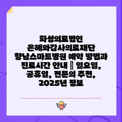 화성의료법인 은혜와감사의료재단 향남스마트병원 예약 방법과 진료시간 공지 | 일요일, 공휴일, 전연락 추천, 2025년 정보 에 대해 자주 묻는 질문 TOP 5