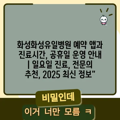 화성화성유일병원 예약 앱과 진료시간, 공휴일 운영 공지 | 일요일 진료, 전연락 추천, 2025 최신 정보