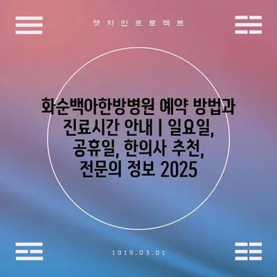 화순백아한방병원 예약 방법과 진료시간 공지 | 일요일, 공휴일, 한의사 추천, 전연락 정보 2025에 대해 알아보겠습니다.