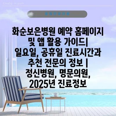 화순보은병원 예약 홈페이지 및 앱 활용 설명서| 일요일, 공휴일 진료시간과 추천 전연락 정보 | 정신병원, 명연락원, 2025년 진료정보 에 대해 자주 묻는 질문 TOP 5