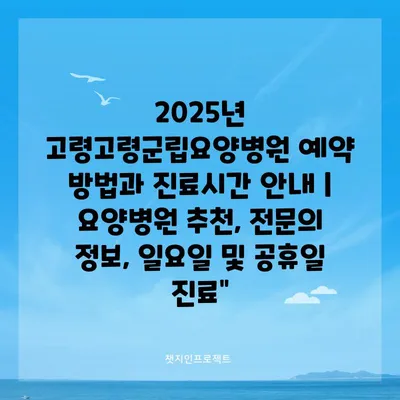 2025년 고령고령군립요양병원 예약 방법과 진료시간 공지 | 요양병원 추천, 전연락 정보, 일요일 및 공휴일 진료”에 대해 자주 묻는 질문 TOP 5