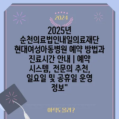 2025년 순천의료법인내일의료재단 현대여성아동병원 예약 방법과 진료시간 공지 | 예약 시스템, 전연락 추천, 일요일 및 공휴일 운영 정보