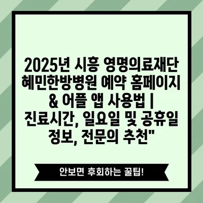 2025년 시흥 영명의료재단 혜민한방병원 예약 홈페이지 & 어플 앱 사용법 | 진료시간, 일요일 및 공휴일 정보, 전연락 추천에 대해 자주 묻는 질문 TOP 5