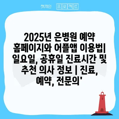 2025년 은병원 예약 홈페이지와 어플앱 이용법| 일요일, 공휴일 진료시간 및 추천 의사 정보 | 진료, 예약, 전연락’ 에 대해 자주 묻는 질문 TOP 5