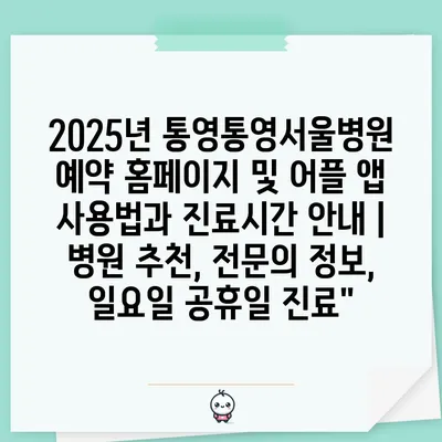 2025년 통영통영서울병원 예약 홈페이지 및 어플 앱 사용법과 진료시간 공지 | 병원 추천, 전연락 정보, 일요일 공휴일 진료에 대해 자주 묻는 질문 TOP 5